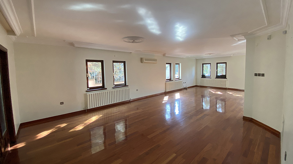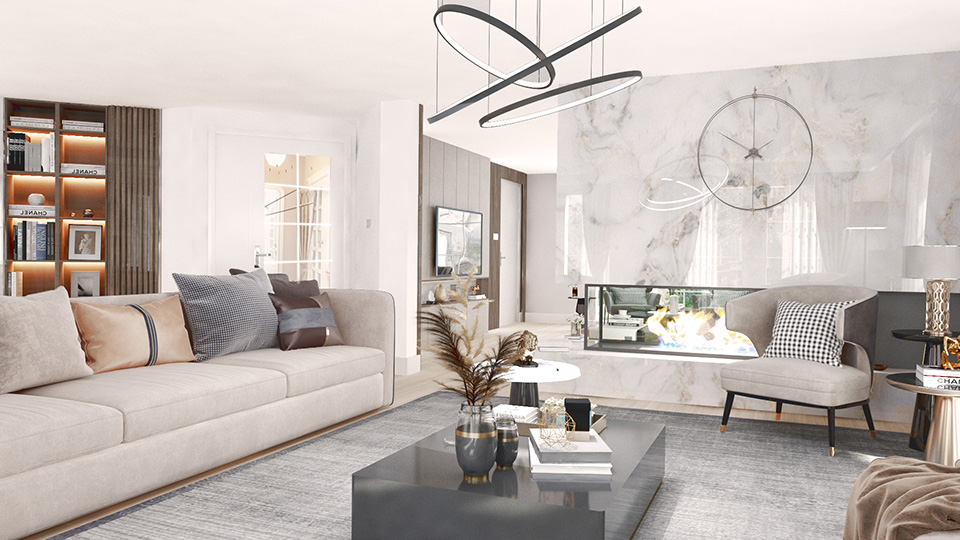 Die teilweise geschlossene Terrasse erhielt flexible Verglasungselemente, sodass sie je nach Wetterlage als Wintergarten genutzt werden kann. Diese Lösung verwischte die Grenzen zwischen Innen- und Außenraum und erhöhte die ganzjährige Nutzbarkeit. Ergänzend dazu wurde die ungenutzte Gartenfläche über der Garage in eine zusätzliche Lounge-Zone verwandelt, wodurch kein Bereich ungenutzt blieb.