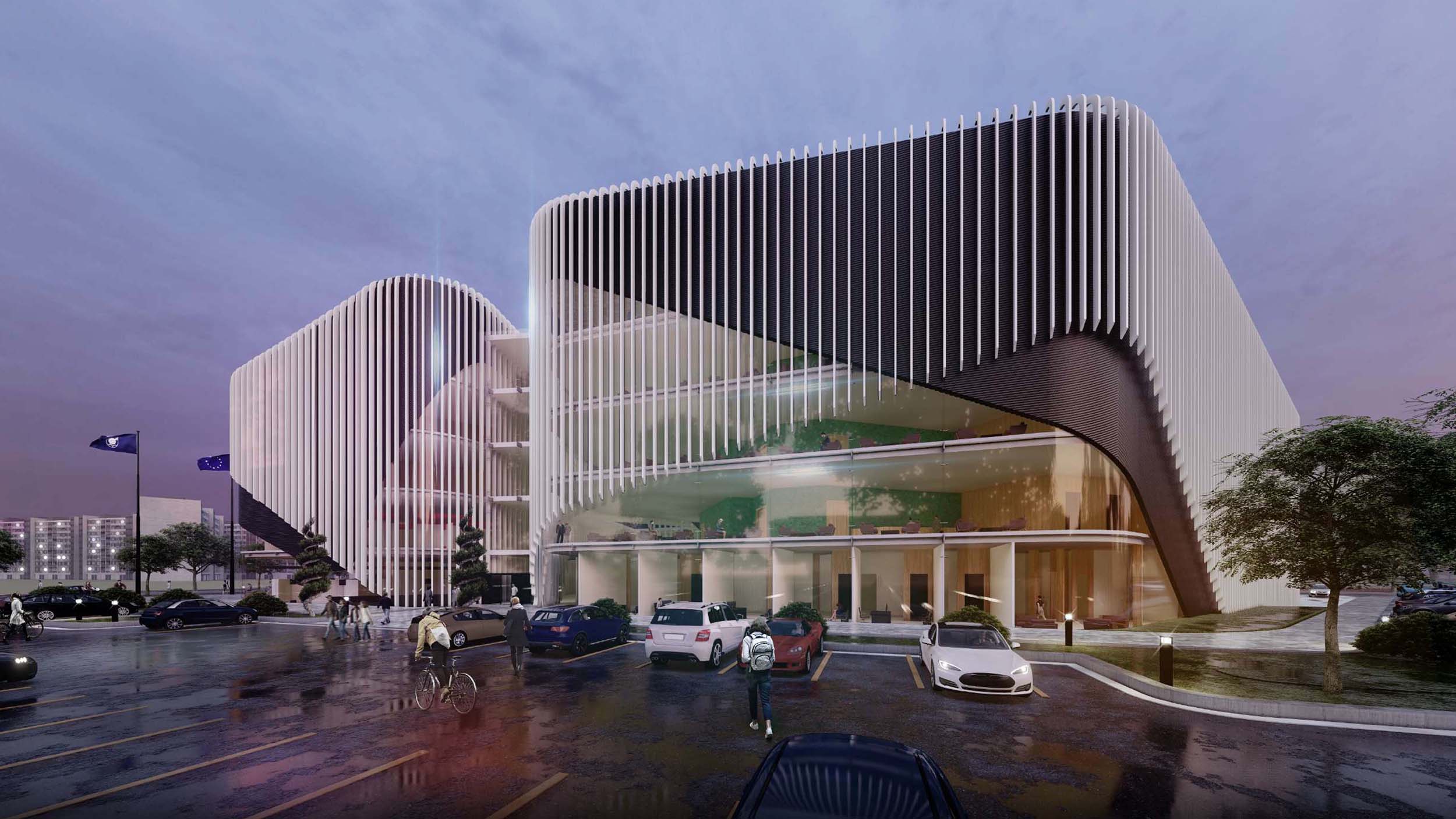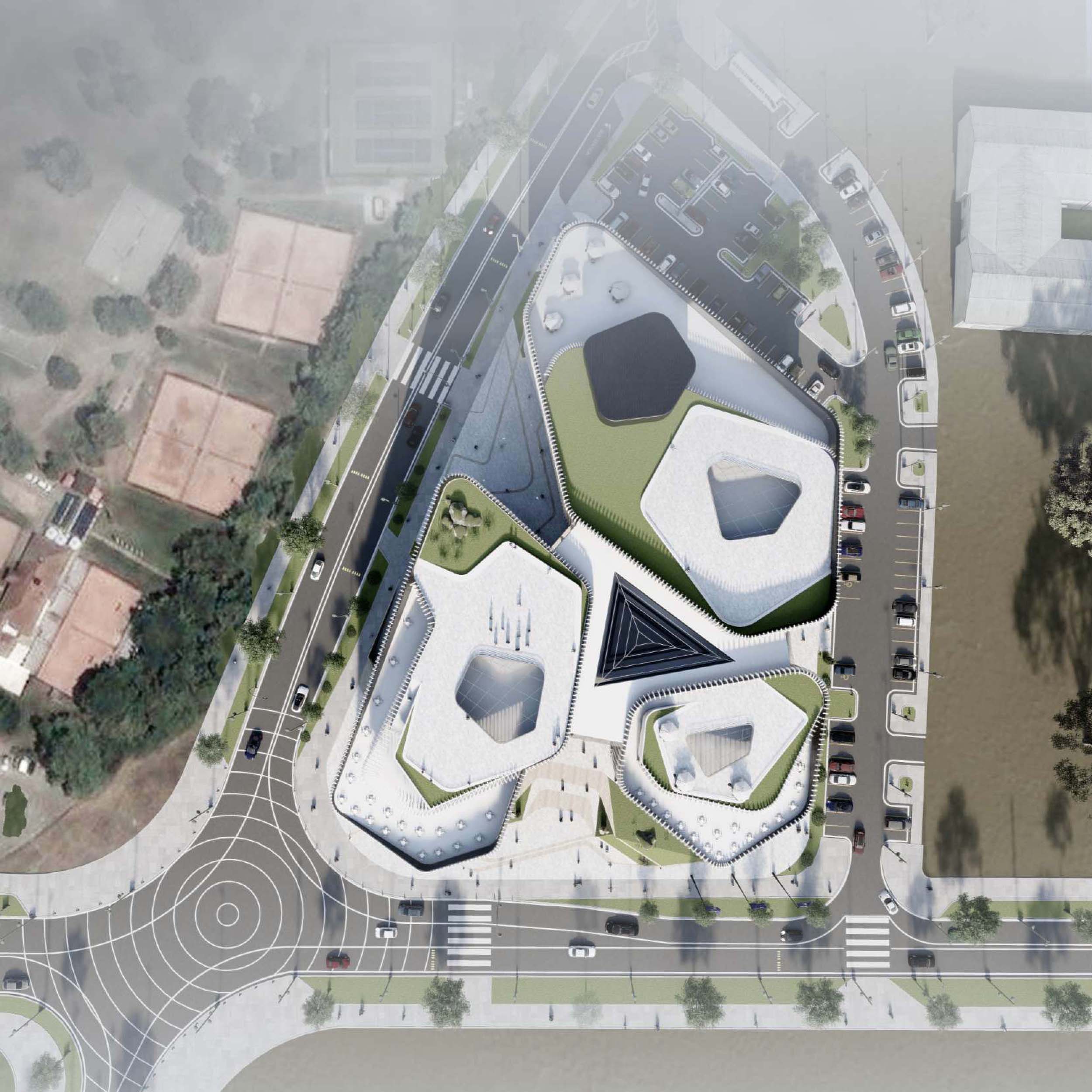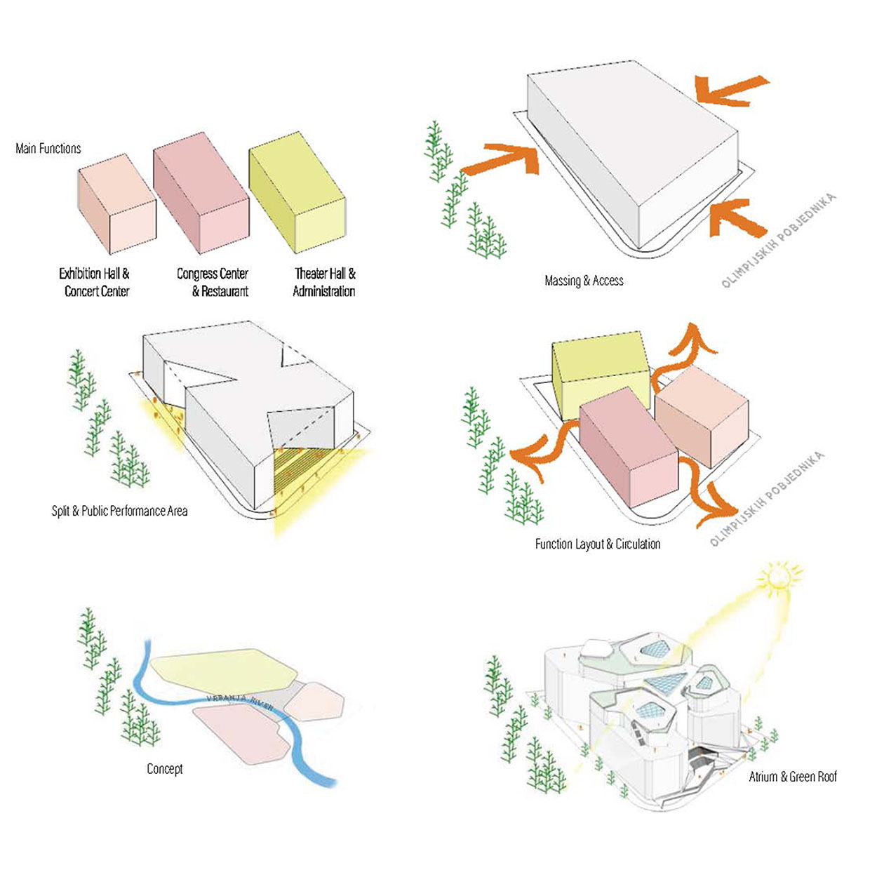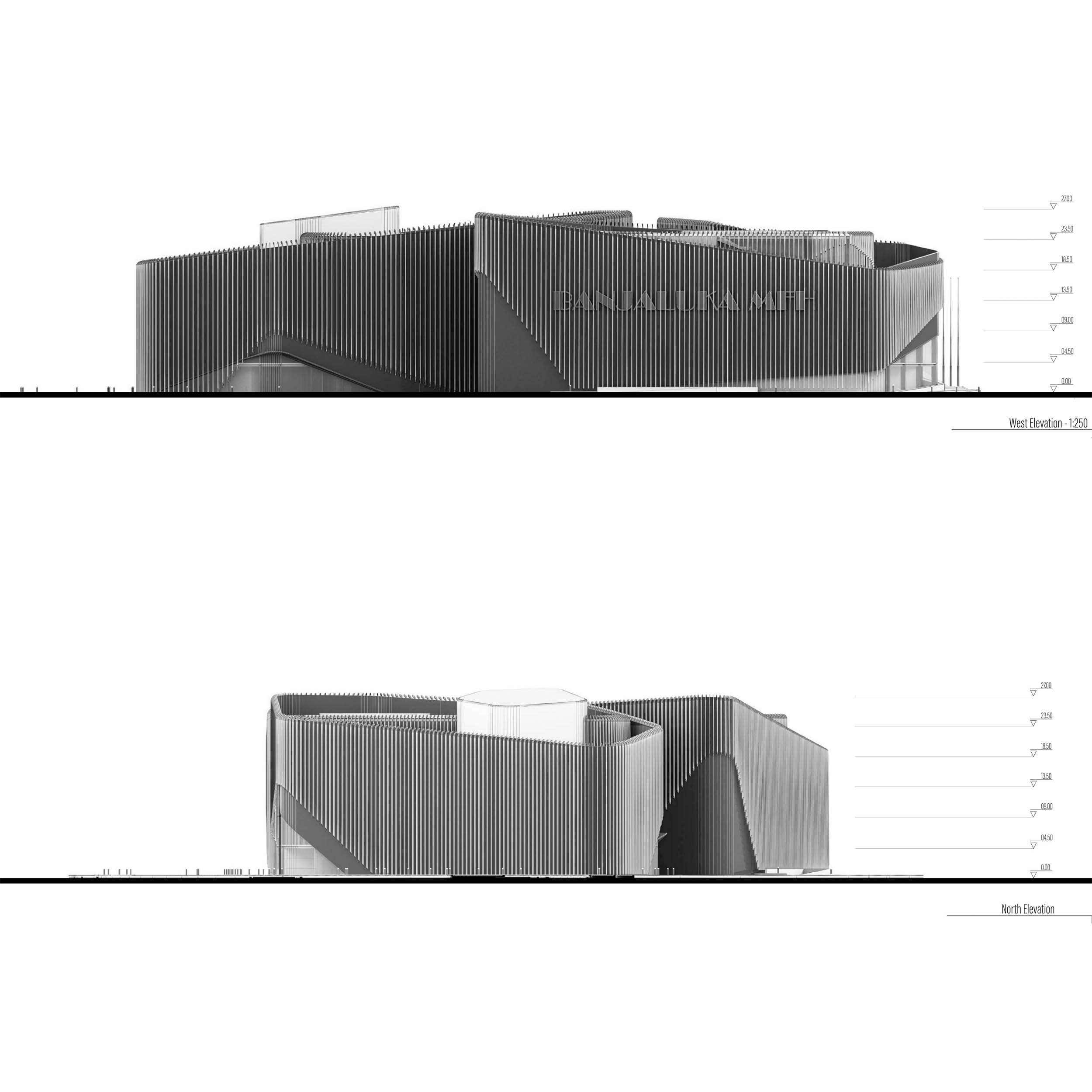 Proje, Banja Luka’nın gelişen, dinamik ve modern karakterini yansıtan, kentsel yaşamın çekim merkezlerinden biri olarak tasarlanmıştır. Bölgenin kentsel kimliğini geliştirme vizyonunun başlangıç adımlarından biri olarak değerlendirilen proje, bulunduğu mekânın karakterini tanımlamada önemli bir rol üstlenecektir. Tasarım, modern ve ilerleyen bir yapıyı simgeleyen, dışavurumcu bir form anlayışıyla geliştirilmiş ve üç ana işlevi bünyesinde toplamıştır. Kentsel bağlamda şehrin hafızasında özel bir yere sahip olan Vrbas Nehri’nin doğal formları ile en büyük kolu Vrbanja Nehri, tasarımın biçimsel referanslarını oluşturmuştur.