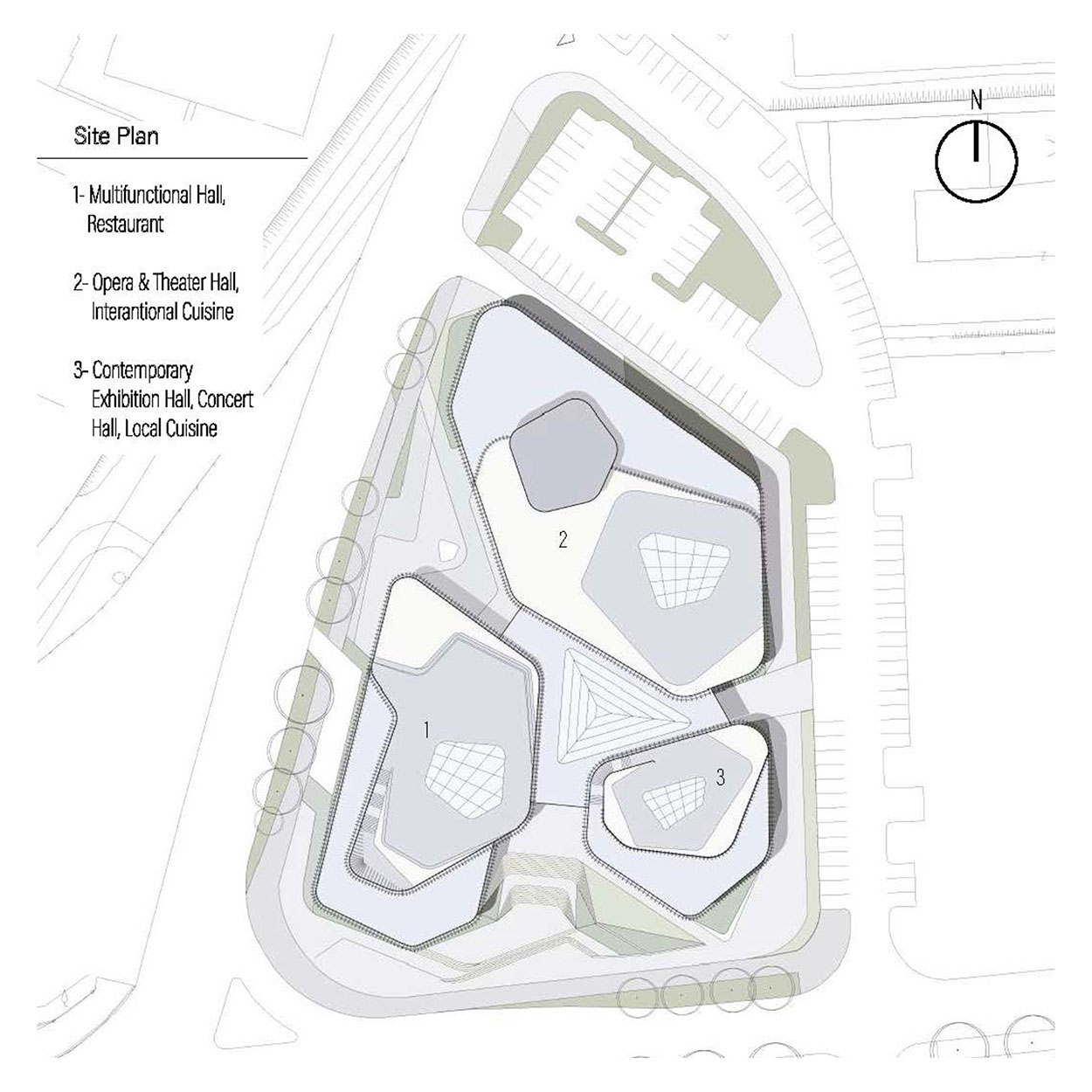 Bina kütleleri ve cephelerindeki dinamik çizgiler, kompleksin kültürel ve sanatsal etkinlikler aracılığıyla şehre kazandıracağı yaşam ritmini yansıtmaktadır. Projenin sanatsal karakteri, kentsel ölçekte anıtsallık etkisi yaratacak ve bölgenin şehirle olan mekânsal ilişkisini güçlendirecektir.