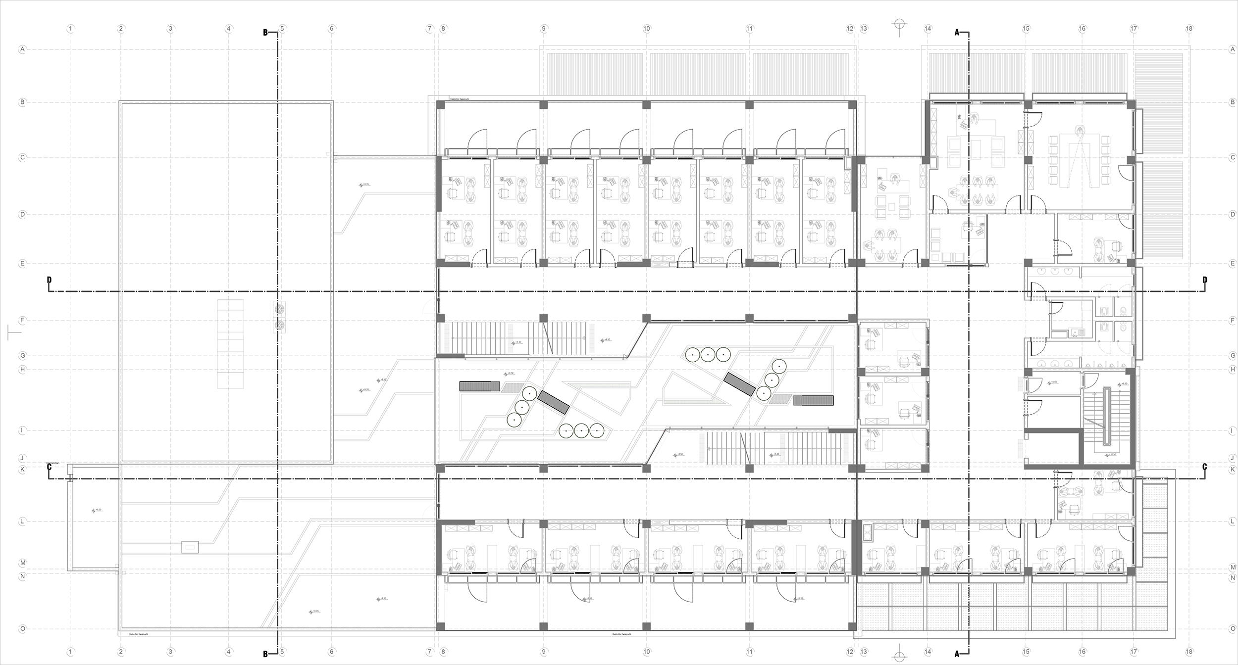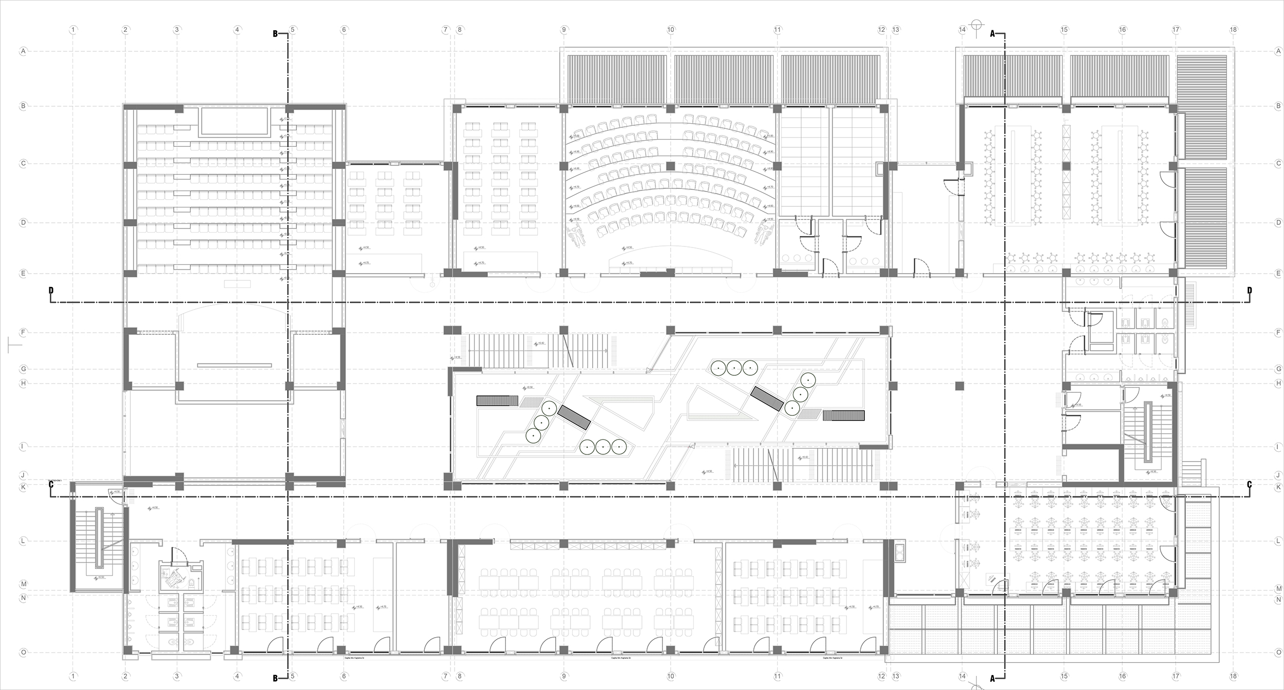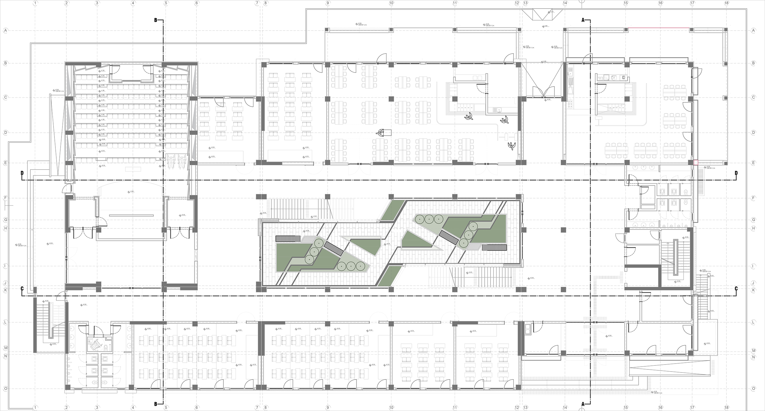 Kat planları, projenin ana fonksiyonları arasında bağlantı görevi gören bir avlu etrafında düzenlenmiştir. Yapının merkezinde yer alan Avlu, yalnızca zengin bir görsel etkileşim alanı değil, aynı zamanda tesis kullanıcıların keyifli zaman geçirebildikleri önemli bir buluşma mekanı olarak tasarlanmıştır.