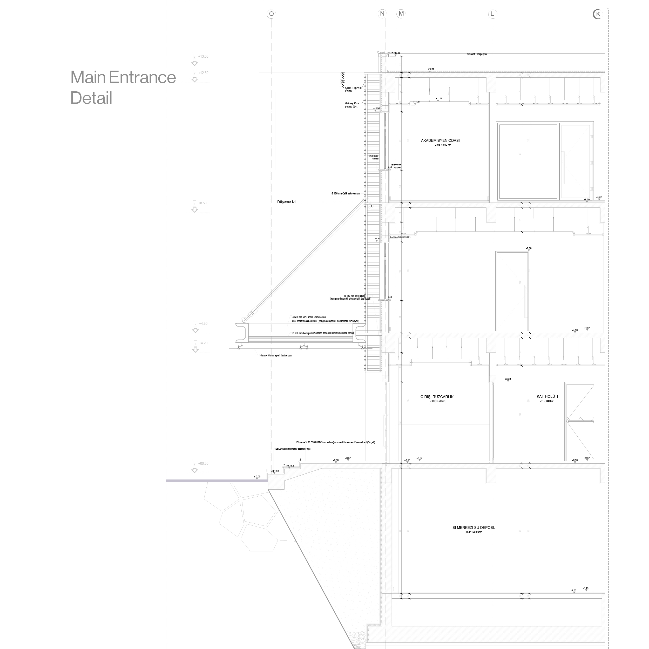 Binanın ikinci katındaki akademik birimler, toplantı odaları ve yönetim birimleri gibi alanlara düzenli bir şekilde doğrudan bağlıdır. Yapının bu katında yer alan, hem akademisyenler hem de öğrenciler tarafından kullanılmak üzere çekici bir şekilde tasarlanmış peyzajlı bir teras bulunmaktadır. Aynı zamanda geniş bir doğa panoramasına sahip teras, kapalı alan-açık alan ilişkisini güçlendirecek, kullanıcılara ferah ve sakin alanlar sunacaktır. Proje, temiz hava sirkülasyonunu ve doğal ışığın verimliliğini en üst düzeye çıkarmayı amaçlamaktadır.