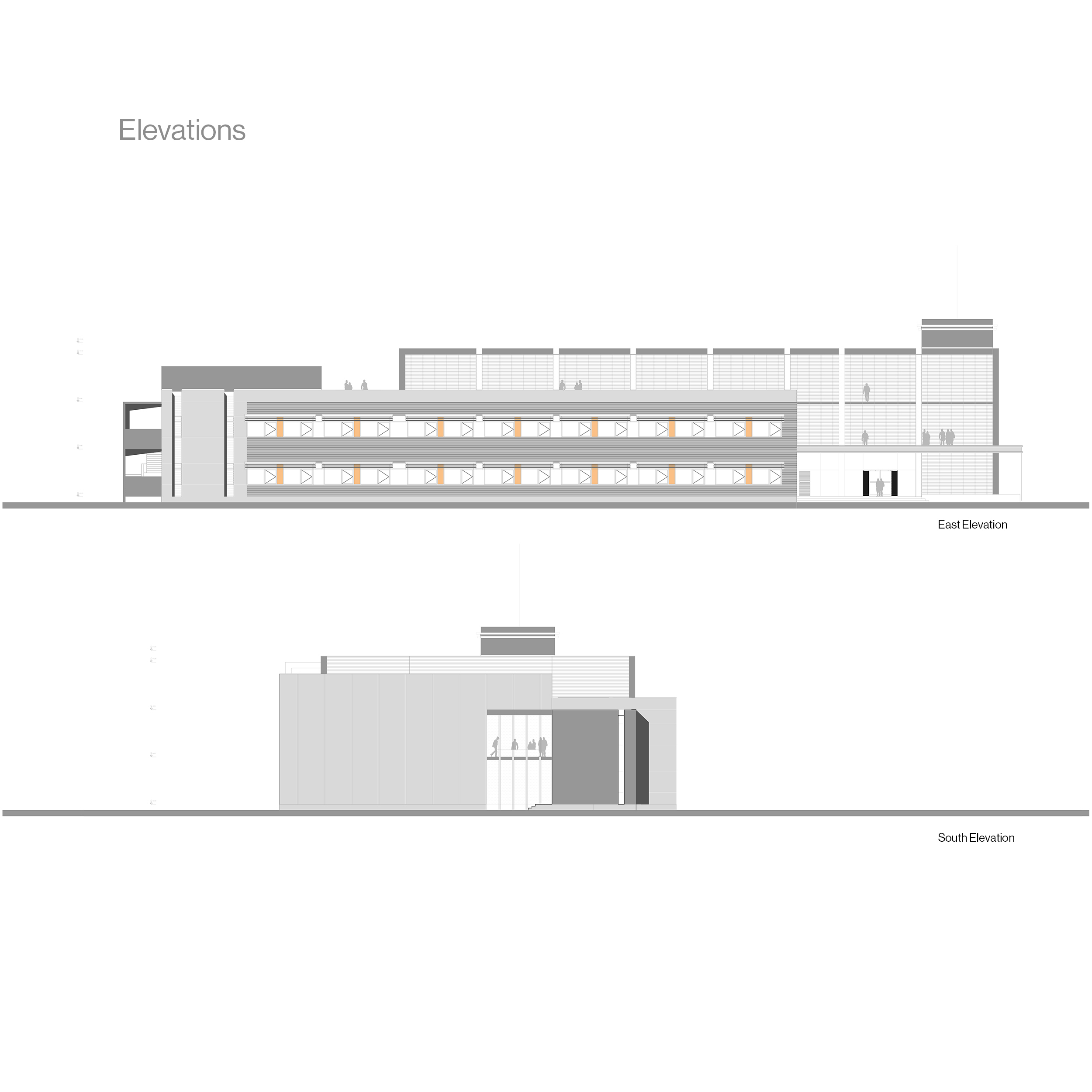 Arsanın yapısına ve tasarım girdilerine bağlı olarak genel derslikler Doğu-Batı aksı üzerinde yer almaktadır. Bu sebeple güneşin sınıflar üzerindeki olumsuz etkilerini azaltmak, güneş ışınlarının kontrollü biçimde iç mekana alınabilmesi için güneş-kırıcı cephe malzemeleri kullanılmış ve kullanılan malzemelerin sürdürülebilir yapı malzemelerinden yapılmış olmasına dikkat edilmiştir. Bununla birlikte, seçilen cephe malzemeleri tasarımın modern ve yatay çizgilerini vurgulamaktadır.