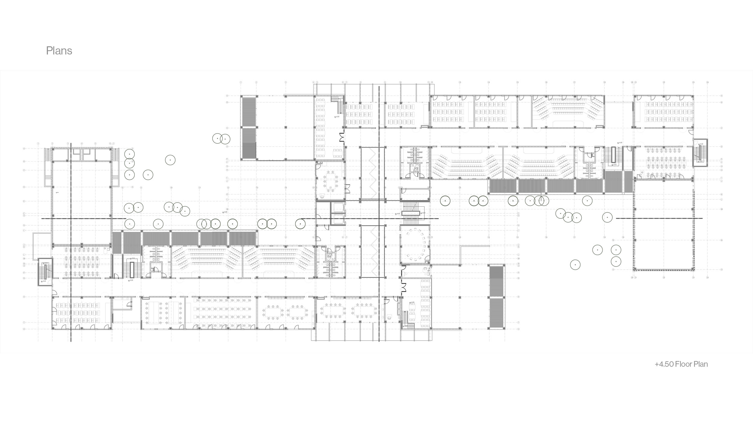 Zemin katta: derslikler, laboratuvarlar, atölyeler, amfiler, 175 kişi kapasiteli çok amaçlı salon/konferans salonu ve yemekhane,