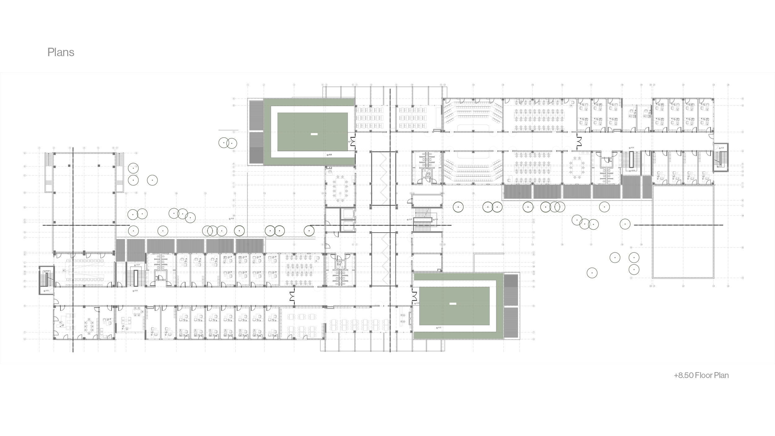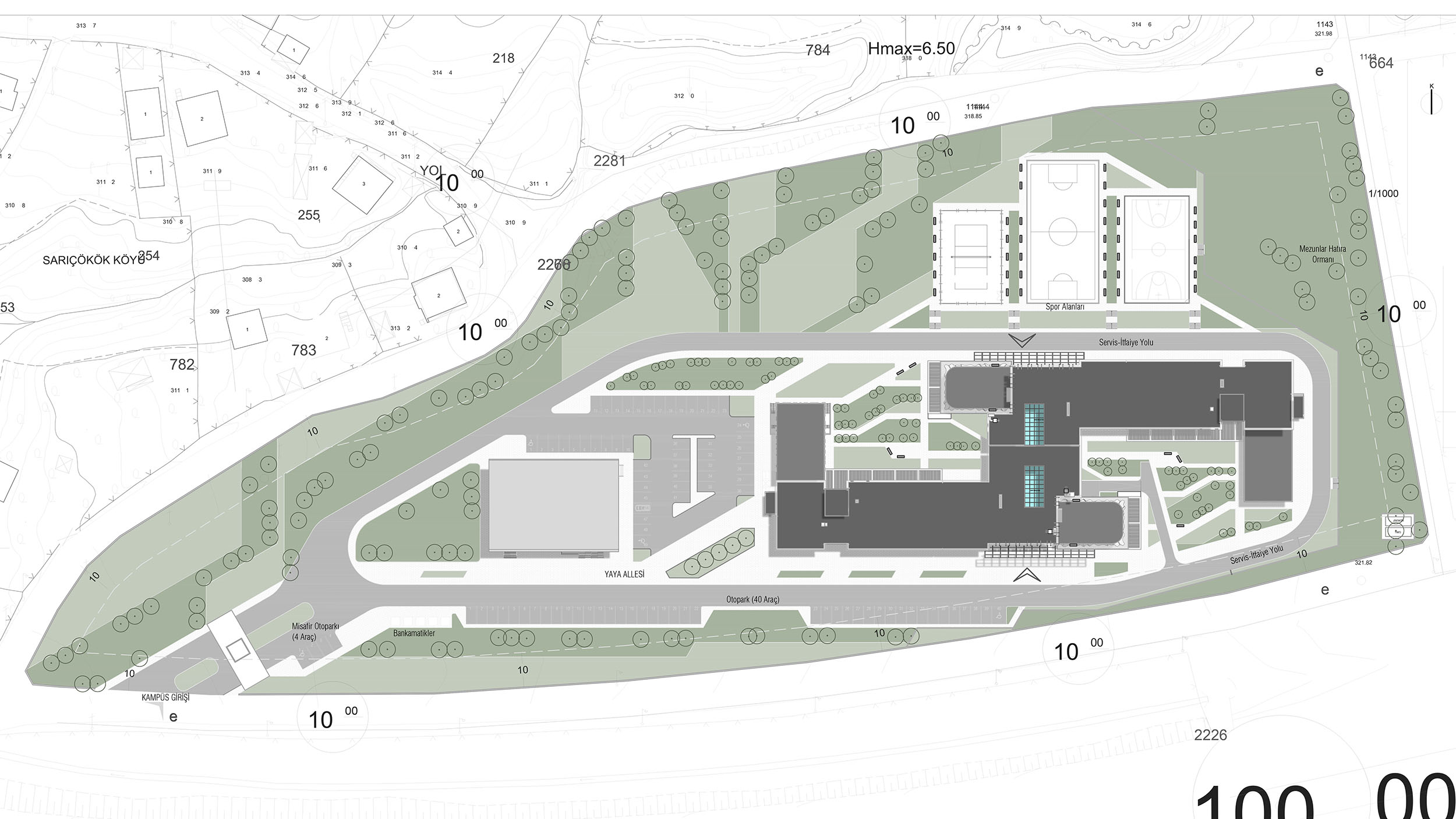 Öğrencilerin kampüs içerisinde uzun süreler geçireceği dikkate alınarak, iç ve dış mekânlar arasındaki süreklilik güçlendirilmiş, sosyal etkileşim ve yaşam kalitesini artıracak nitelikte mekânsal çözümler geliştirilmiştir. Spor aktiviteleri ve sosyo-kültürel kullanımlara olanak sağlayan çevresel tasarım öğeleri ile yapı kompleksi bir bütünlük içinde zenginleştirilmiştir.