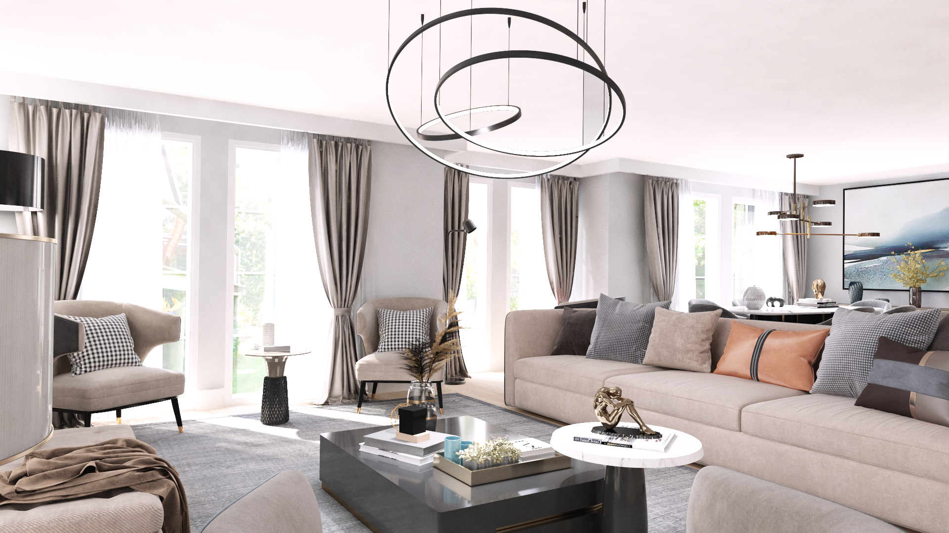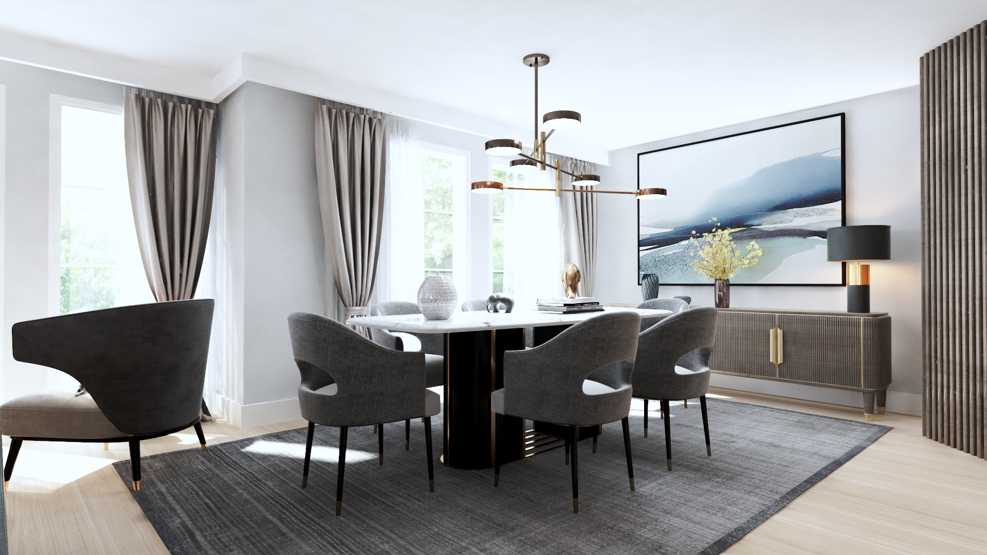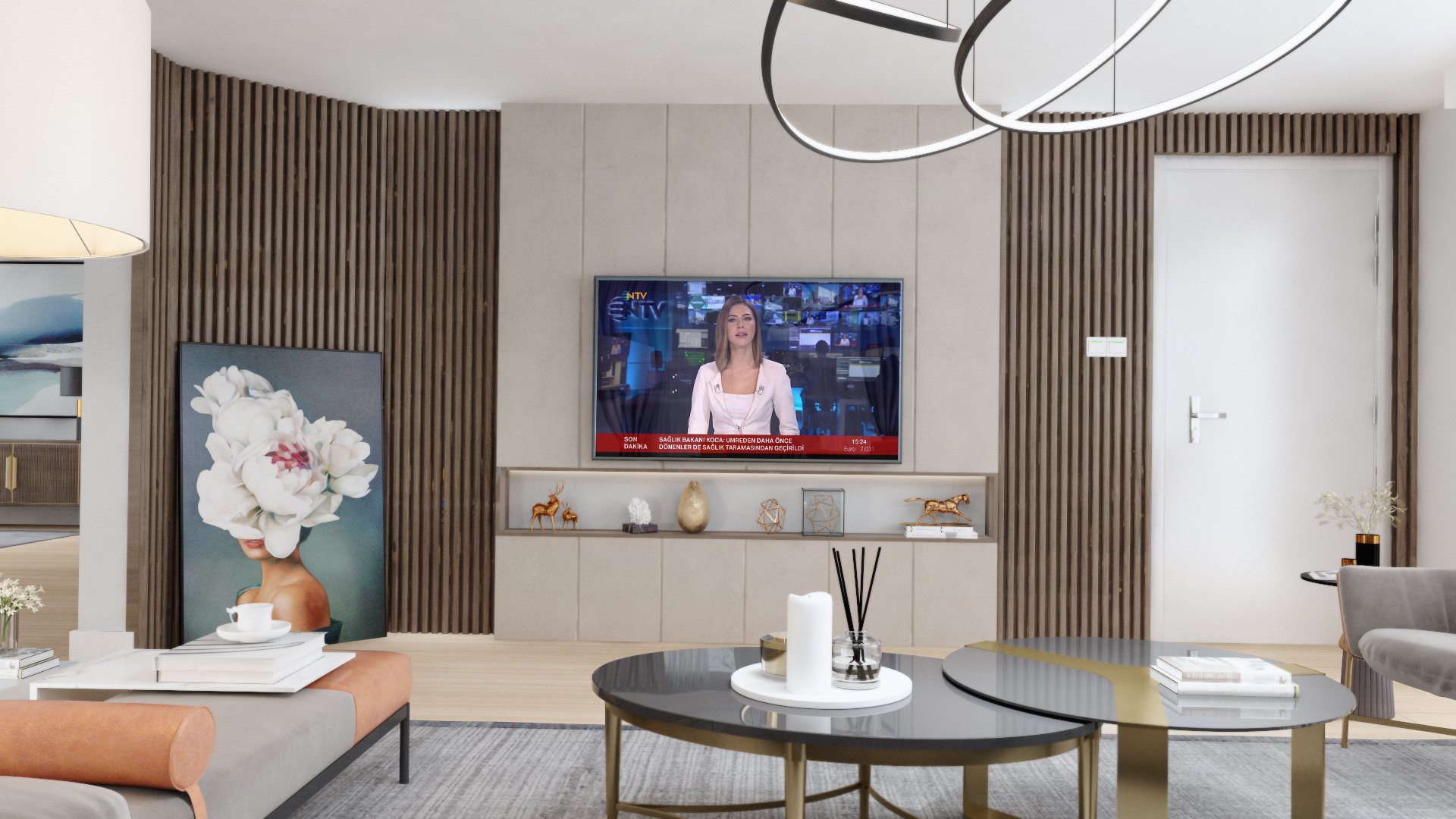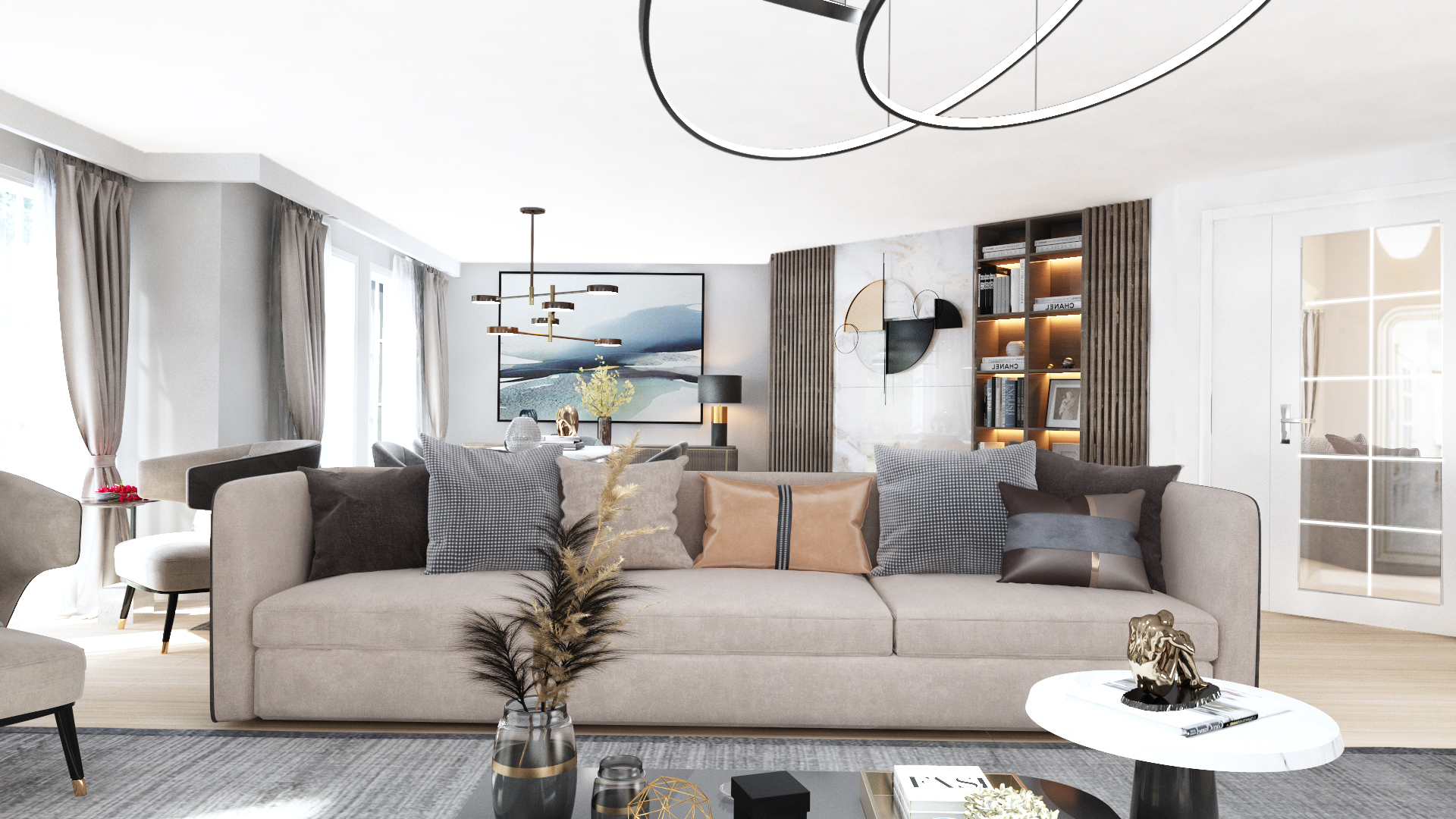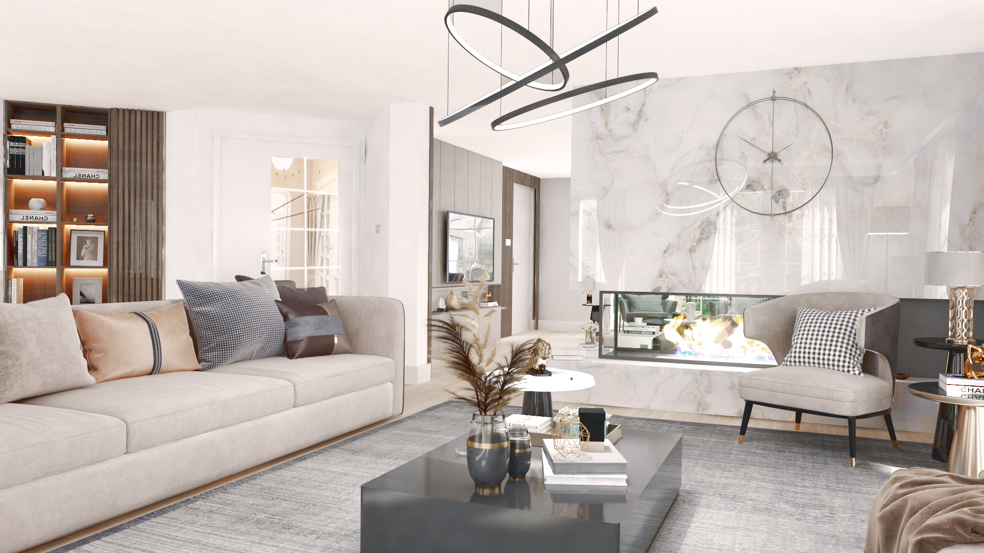 Büyük ve başlangıçta tanımlanamayan yaşam alanı, üç ana fonksiyonu kucaklayacak şekilde yeniden tasarlandı: misafir ağırlama, yemek yeme ve ev sahibinin günlük aktivitelerini sürdüreceği dinlenme alanı. Mekandaki fonksiyonun bu şekilde çeşitlendirilmesi, ortak zaman geçirilen mekanlarda her bireyin kendine ait hissedebileceği özel nişler yaratılmasını sağladı. Yaşam alanına eklenen şömine, görsel bir odak noktası olmanın yanı sıra, farklı fonksiyonları ayıran ve mekana zenginlik katan güçlü bir donatı olarak konumlandı.