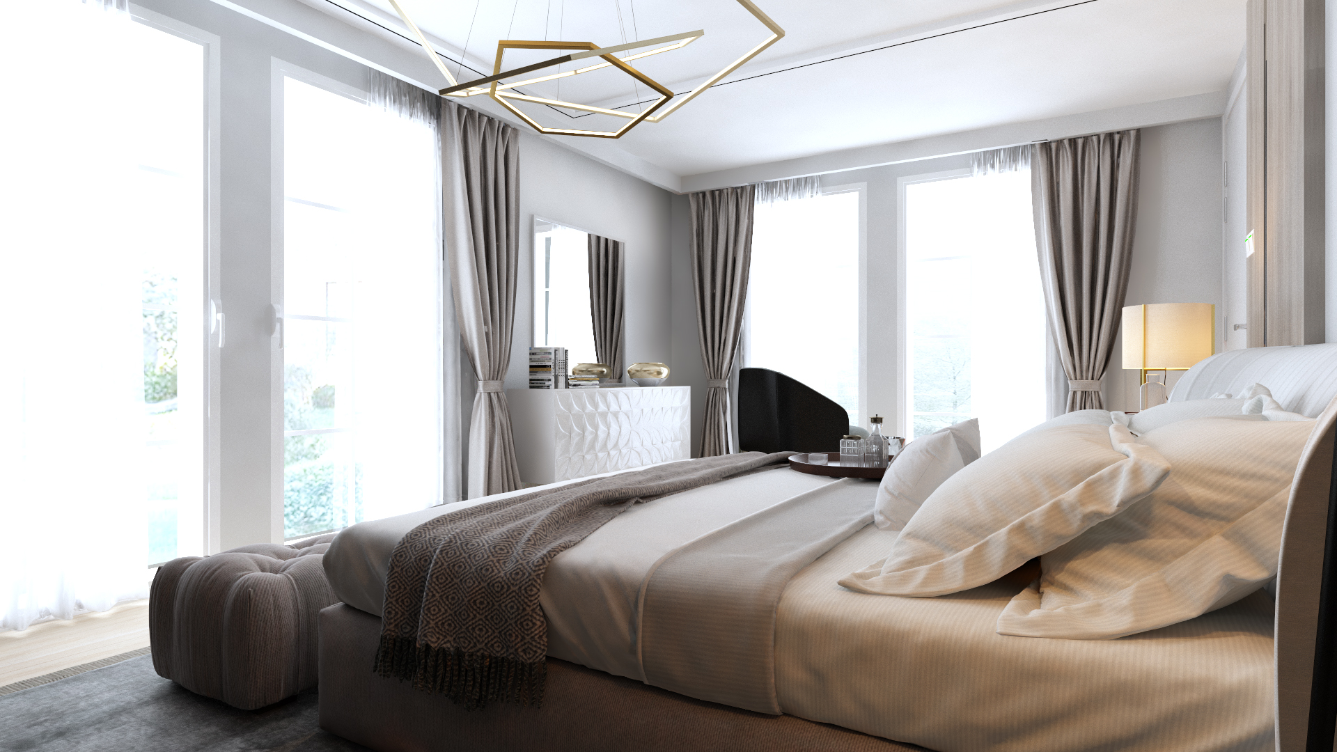 Yaşam alanlarında tespit ettiğimiz en büyük dezavantaj, küçük pencere boşluklarıydı. Bu durum, mekanın doğal ışık alımını ve havalandırmasını kısıtlıyordu. Pencerelerin oranlarında yapılan stratejik değişikliklerle, doğal ışık ve havalandırmadan en üst düzeyde faydalanırken, aynı zamanda nispeten düşük kat yüksekliğine sahip iç mekanlarda ferah bir atmosfer yaratmayı hedefledik. Işığın içeri akışı, mekanın algılanan hacmini genişleterek, her köşede aydınlık ve davetkar bir his uyandırdı.